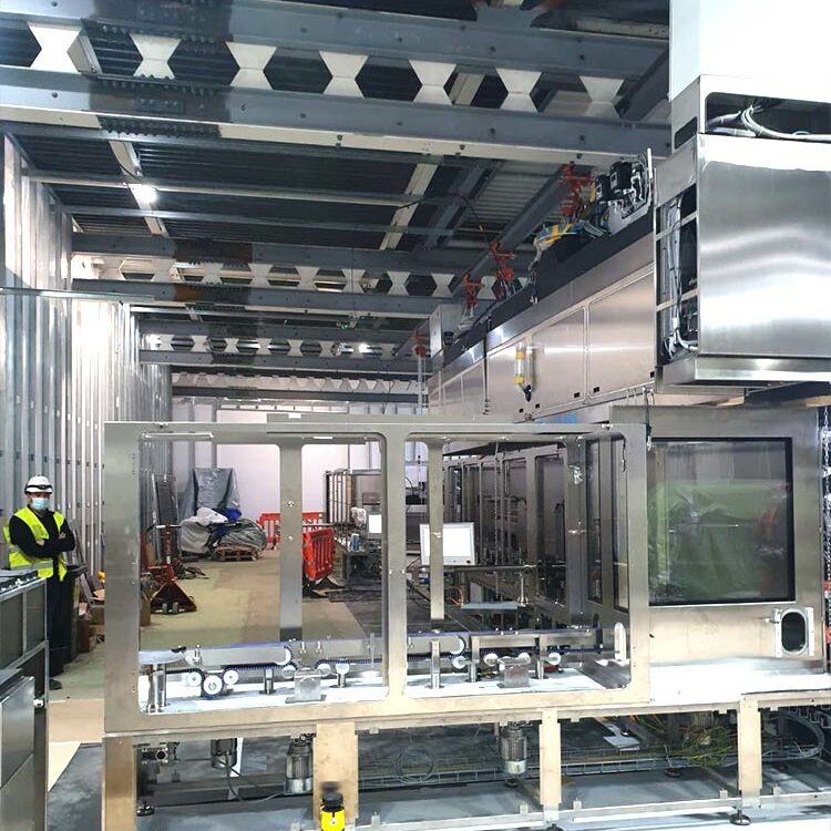 Entladung und Einbringung und Positionierung zur späteren Verkettung von vier Pressen zu einer vollautomatisierten Produktionsstraße