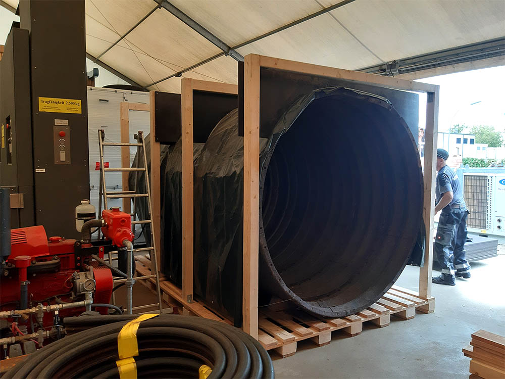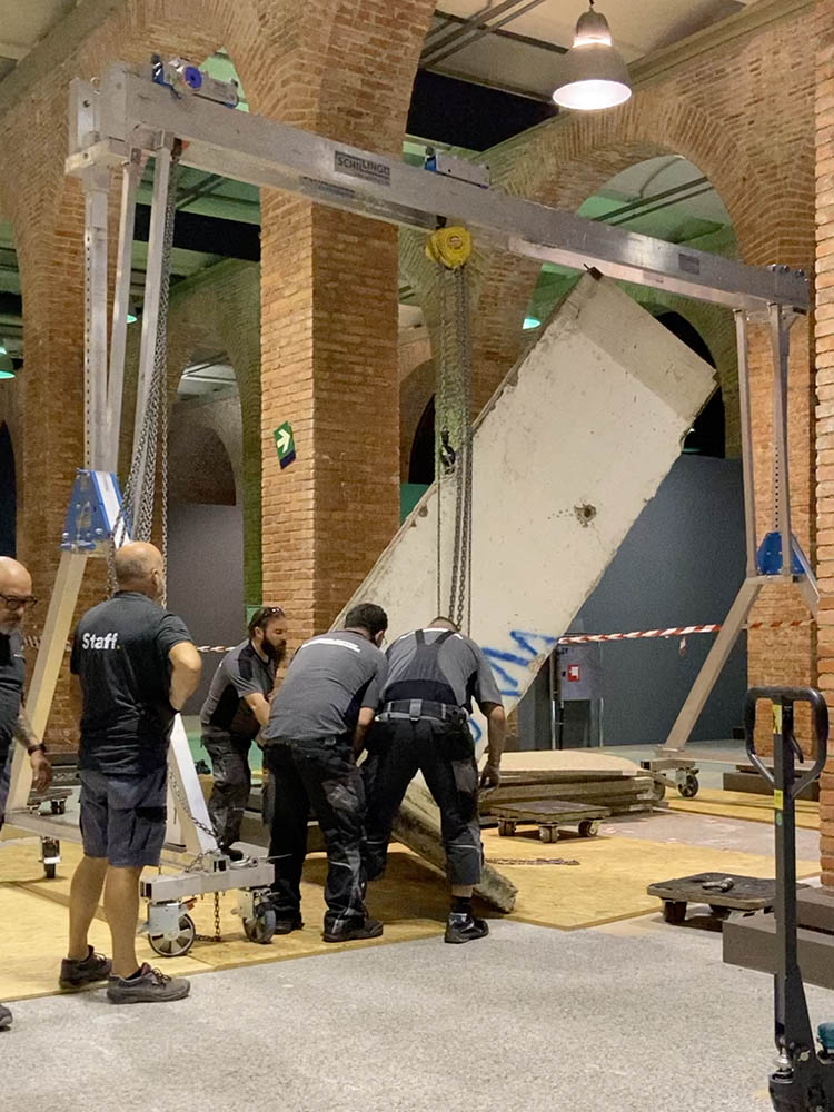 - Transportverpackung für den Fluchttunnel und Einbringung vor Ort in das Museumsgewölbe
